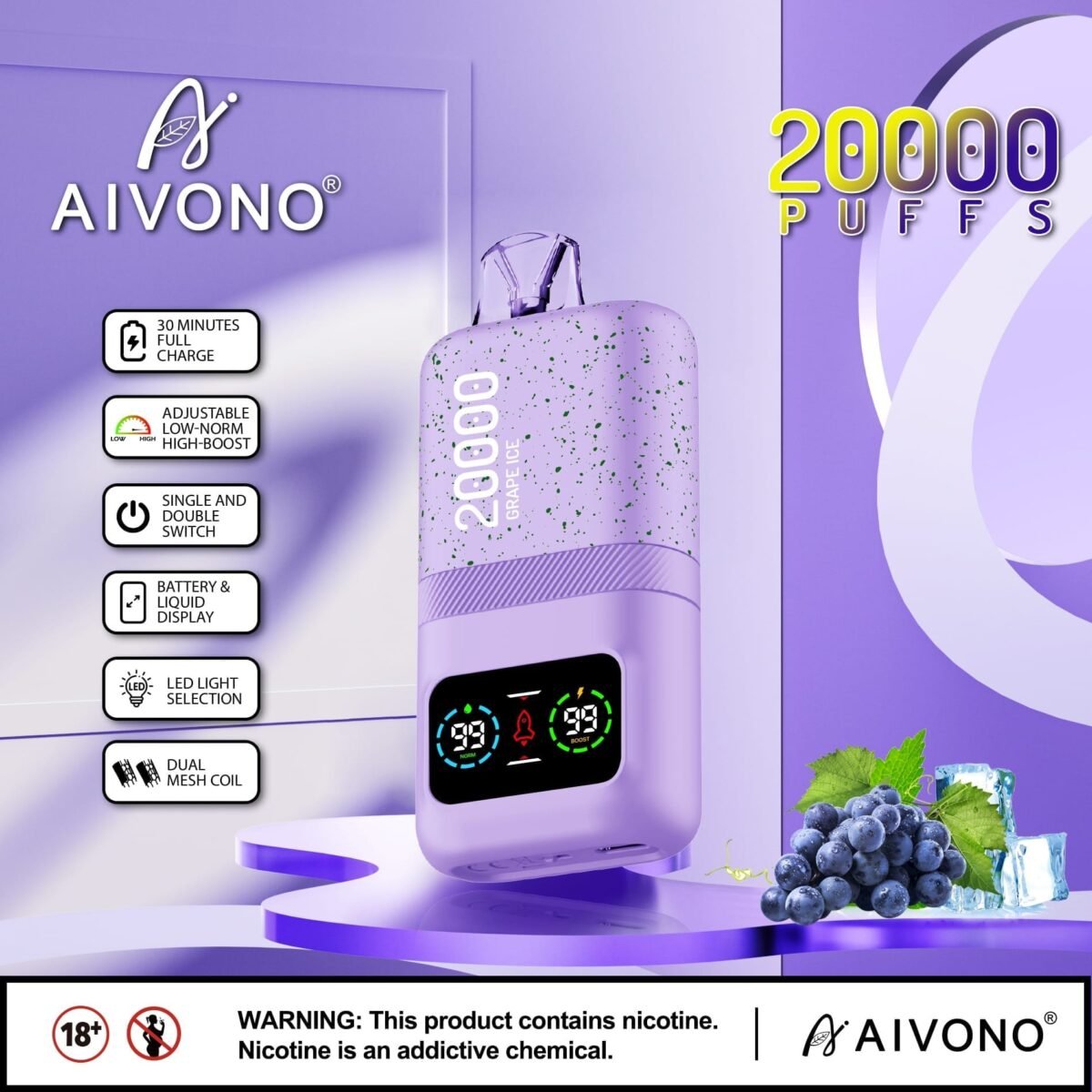 AIVONO AIM MAGIC 20000 Puffs | 0%-5% nicotine, 26mL, dual mesh, LCD display, bulk vape