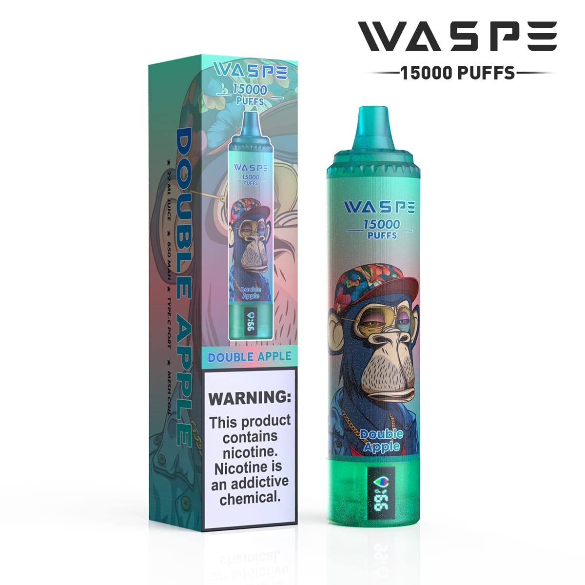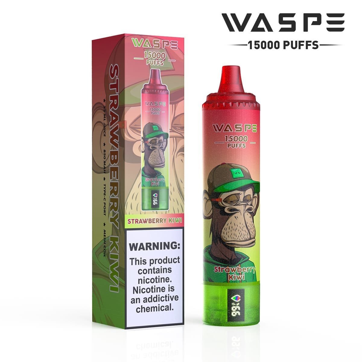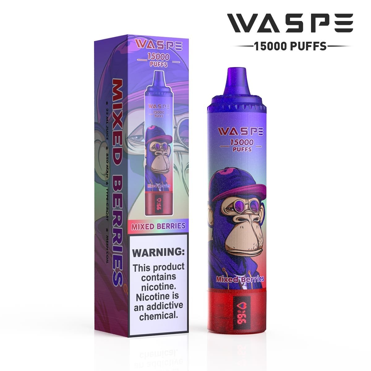 Waspe 15000 puffs | 0% 2% 3% 5% nicotine, 22ml e-liquid, 0.8Ω mesh coil, LCD display, type-C rechargeable, bulk buy disposable vape wholesale